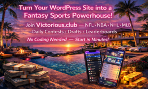 Customize every aspect of your fantasy leagues with Victorious.club. Adjust scoring, create unique contest formats, or run seasonal or daily drafts using real-time NFL, NBA, NHL, and MLB stats. The plugin seamlessly integrates with WordPress, allowing you to engage users with interactive leaderboards, live scoring, and automated updates—all without writing code.